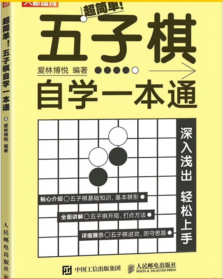 书籍名称:五子棋自学一本通,爱林博悦内容简介 五子棋是一种两人对弈的策略性棋类游戏,想要取得五子棋游戏的胜利需要重视行棋思路和技巧,本书是专门为五子棋初学 者准备的自学教程。 全书共分为四个章节,第 一章“五子棋的基础知识”介绍了五子棋的棋盘、执子姿势、记谱方法和常用术语,有利于初学 者快速了解五子棋相关知识;第 二章“五子棋的基本棋形”讲解了连五、活四、冲四、活三、眠三、活二等棋形,有利于初学 者在对弈中灵活运用棋形;第三章“五子棋的开局与打点”介绍了斜指开局、直指开局和打点棋形,有利于初学 者学会利用先手优势;第四章“五子棋攻与防守”详解了五子棋的子力、棋子的连接、棋子的方向攻防守策略,通过战术帮助读者提高赢棋率。本书语言通俗易懂,深入浅出,适合五子棋初学 者阅读。 目录 第 一章 五子棋的基础知识 1 五子棋的棋盘与棋子 2 棋盘 2 棋子 2 五子棋的执子姿势 3 五子棋的记谱 3 五子棋的常用术语 4 阳线 4 阴线 4 一着 4 长连 4 连五 4 活四 5 连冲四 5 跳冲四 5 活三 6 眠三 6 双活三 7 活二 7 眠二 8 做杀 8 做棋 8 VCF 8 VCT 8 先手 9 先手 9 先手方 9 后手方 9 禁手 9 追下取胜 9 自由取胜 9 一子双杀 9 定式 9 五子棋的规则 10 猜先 10 开局 10 三手可交换 11 五手两打 12 禁手 12 三三禁手 13 四四禁手 14 长连禁手 15 第二章 五子棋的基本棋形 17 连五 18 活四 19 冲四 连冲四 跳冲四 23 活三 24 连活三 24 跳活三 25 假活三 26 眠三 28 连眠三 28 跳眠三 29 活二 30 连活二 30 跳活二 31 眠二 33 连眠二 33 跳眠二 34 双活三 36 阳线上的双活三 39 阳线和阴线上的双活三 40 阴线上的双活三 41 多重双活三 43 四三 45 阳线上的四三 50 阴线上的四三 51 四四 52 第三章 五子棋的开局与打点 53 五子棋的开局 54 斜指开局 54 直指开局 56 开局时黑棋攻性强弱 58 阴线上的连二 59 阳线上的连二 59 桂二 60 阴线上的间二 60 阳线上的间二 61 五子棋开局的选择 62 五子棋的打点 67 棋形一 67 棋形二 68 棋形三 68 棋形四 69 五子棋打点的选择 70 第四章 五子棋攻与防守 75 五子棋的子力 76 五子棋的连接和方向 78 五子棋攻 81 直攻和间攻 81攻的时机 83攻的顺序 86 创造三三获胜 87 创造四三获胜 89 创造四四获胜 91 利用三三禁手获胜 92 利用四四禁手获胜 94 五子棋的防守 97 五子棋防守要点 9的防守 98 四三的防守 99 躲避禁手点 102 白棋的团角防守 104 白棋的贴身防守 106 整体介绍 五子棋基础知识、基本棋形 系统讲解 五子棋开局、打点方法 详细展示 五子攻、防守思路 本书 案例丰富,内容逻辑性强 图文配合讲解五子棋相关知识更直观、更具趣味 侧重与讲解五子棋棋形攻防守策略 作者简介 爱林博悦 是一家从事图书策划、编辑、出版和营销的专业机构。 查看书的图片
