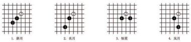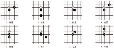 开局分斜指开局和直指开局两类,共计26种,开局名称均以“星”“月”命名。